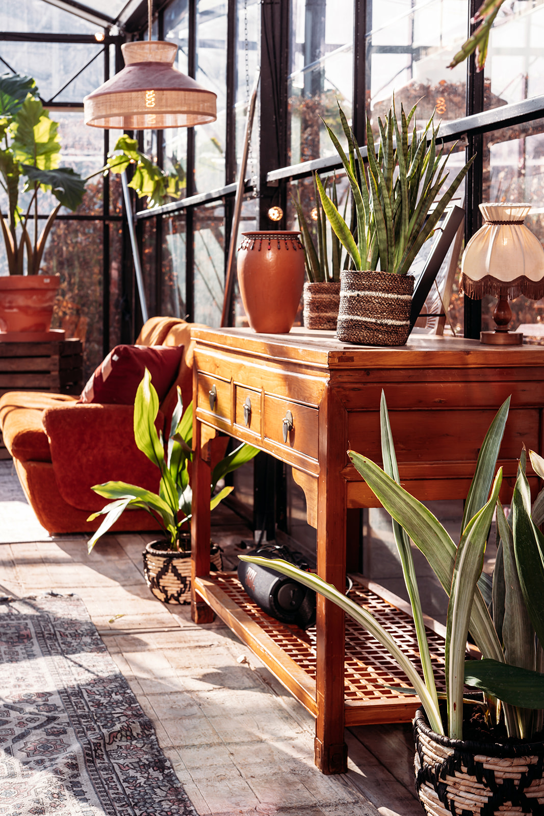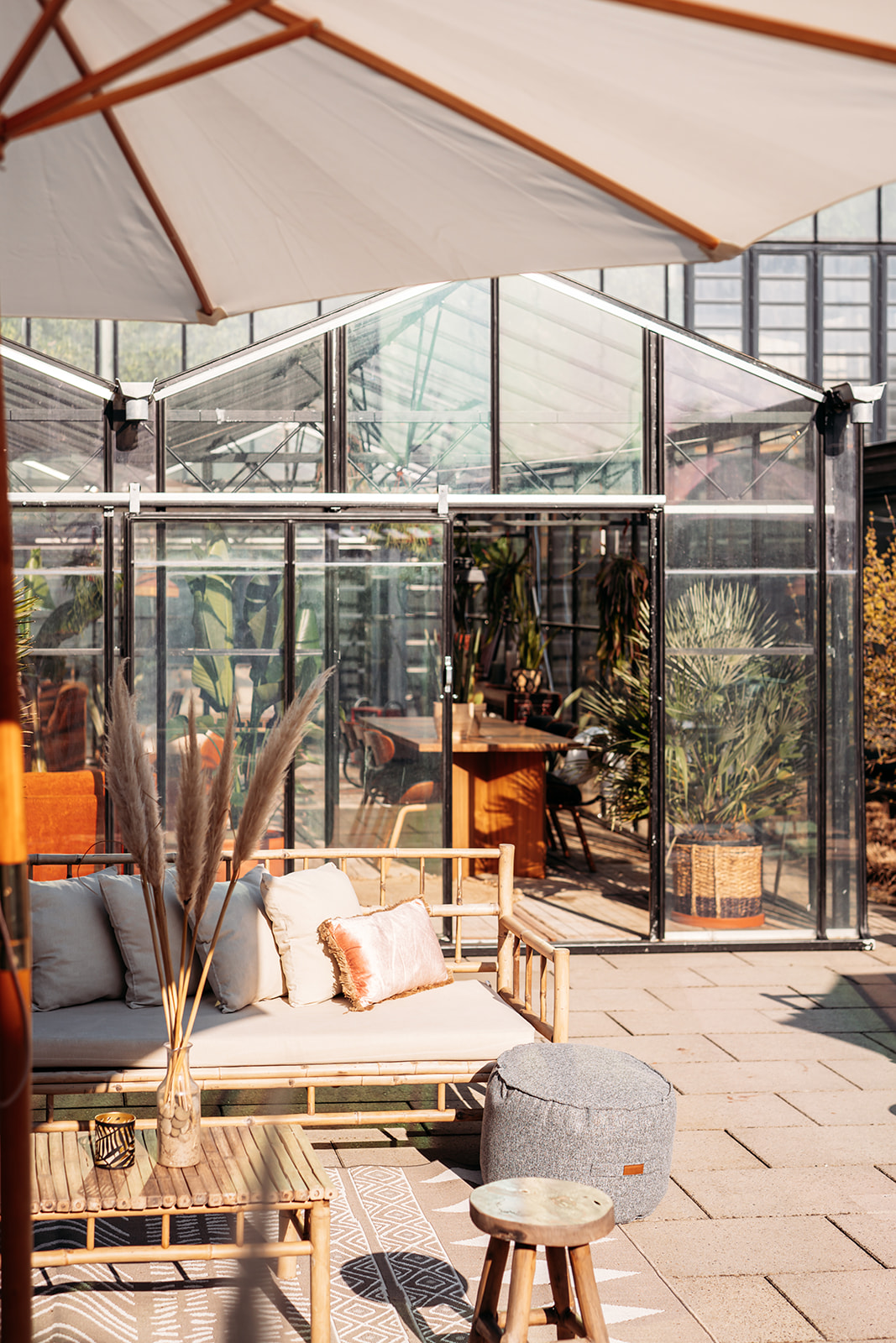 The Greenhouse is furnished with vintage sofas, stools, chairs and a reading table. Equipped with various heaters, southern European plants and cozy lighting, you can enjoy a Mediterranean environment here all year round. Ideal for your spring drink or summer event!