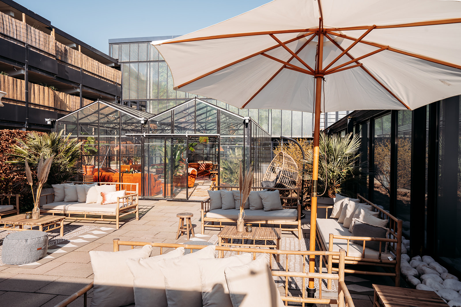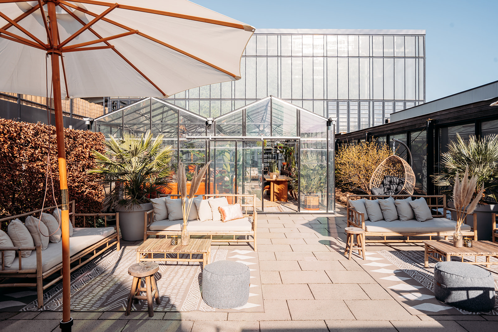 Welcome to our sunny terrace! The ideal place for a delicious refreshing drink and socializing with colleagues after a long meeting. With a unique container bar, comfortable lounge seats and a beachy look, we have brought a little Ibiza to Leiden! 😎 Is the weather not that good? Then you can go to The Greenhouse or The Bar (inside) .